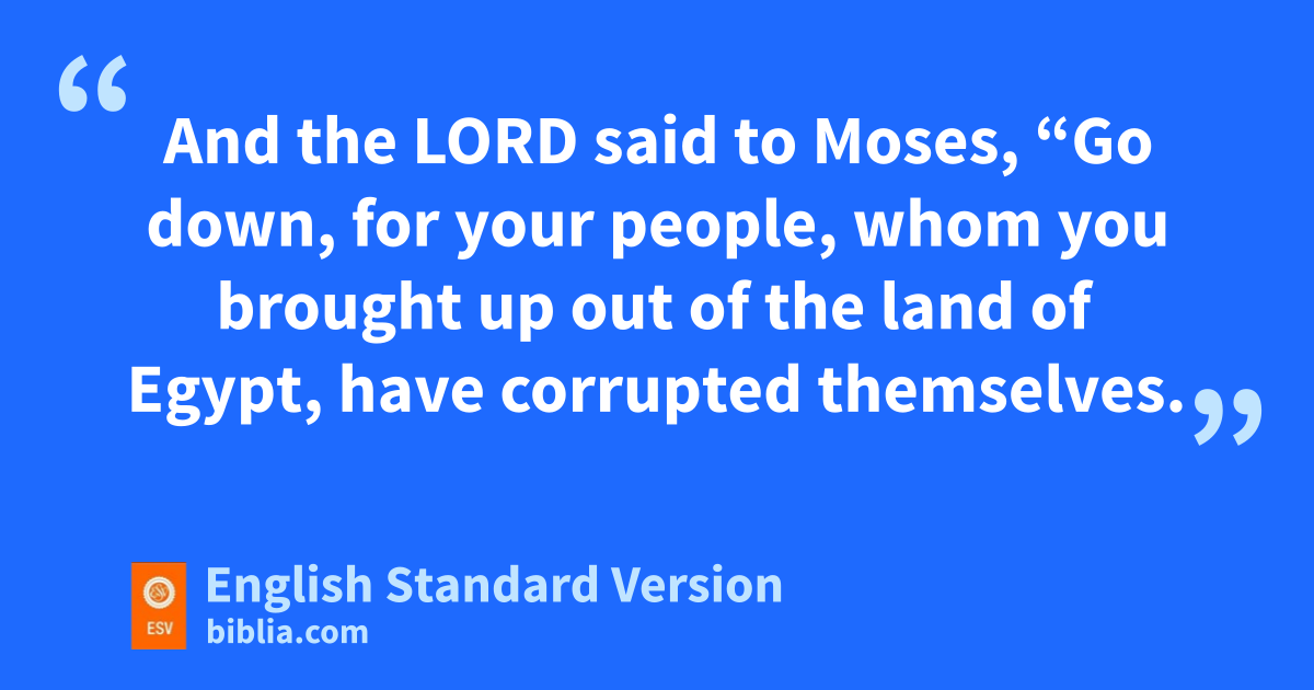 7 And the Lord said to Moses, e“Go down, for your people, whom you brought up out of the land of Egypt, have fcorrupted themselves. 8 They have turned aside quickly out of the way that gI commanded them. They have made for themselves a golden calf and have worshiped it and sacrificed to it and said, ‘These are your gods, O Israel, who brought you up out of the land of Egypt!’ ” 9 And the Lord said to Moses, “I have seen this people, and behold, hit is a stiff-necked people. 10 Now therefore ilet me alone, that jmy wrath may burn hot against them and kI may consume them, in order that lI may make a great nation of you.”