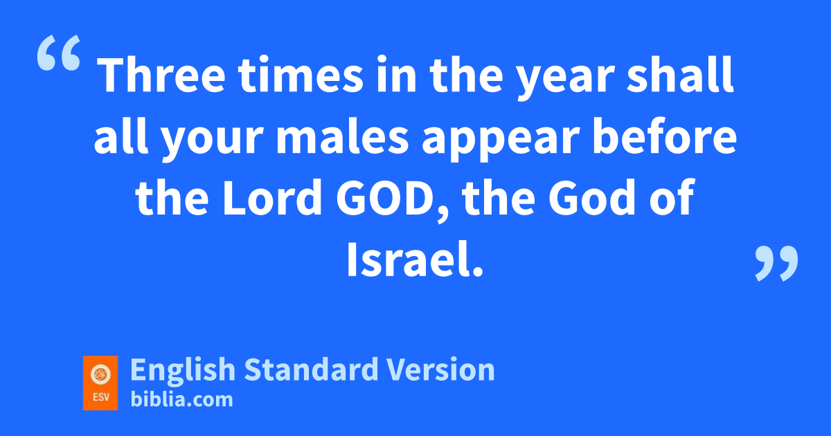 18 c“You shall keep the Feast of Unleavened Bread. Seven days you shall eat unleavened bread, as I commanded you, at the time appointed in dthe month Abib, for in the month Abib you came out from Egypt. 19 eAll that open the womb are mine, all your male2 livestock, the firstborn of cow and sheep. 20 The ffirstborn of a donkey you shall redeem with a lamb, or if you will not redeem it you shall break its neck. All the firstborn of your sons you shall redeem. And gnone shall appear before me empty-handed.