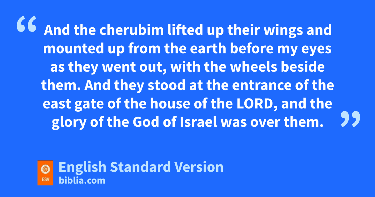 18 fThen gthe glory of the Lord went out from the threshold of the house, and stood over the cherubim. 19 hAnd the cherubim lifted up their wings and mounted up from the earth ibefore my eyes as they went out, with the wheels beside them. And they stood at the entrance of the jeast gate of the house of the Lord, and kthe glory of the God of Israel was over them.