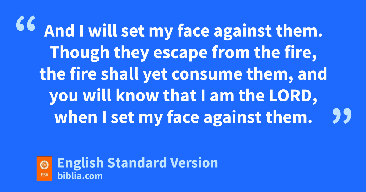 15 And the word of the Lord came to me: 2 q“Son of man, how does rthe wood of the vine surpass any wood, the vine branch that is among the trees of the forest? 3 Is wood taken from it to make anything? Do people take sa peg from it to hang any vessel on it? 4 tBehold, it is given to the fire for fuel. When the fire has consumed both ends of it, and the middle of it is charred, is it useful for anything? 5 uBehold, when it was whole, it was used for nothing. How much less, when the fire has consumed it and it is charred, can it ever be used for anything! 6 Therefore thus says the Lord God: vLike the wood of the vine among the trees of the forest, twhich I have given to the fire for fuel, so have I given up the inhabitants of Jerusalem. 7 wAnd I will set my face against them. Though xthey escape from the fire, the fire shall yet consume them, yand you will know that I am the Lord, wwhen I set my face against them. 8 zAnd I will make the land desolate, because athey have acted faithlessly, declares the Lord God.”