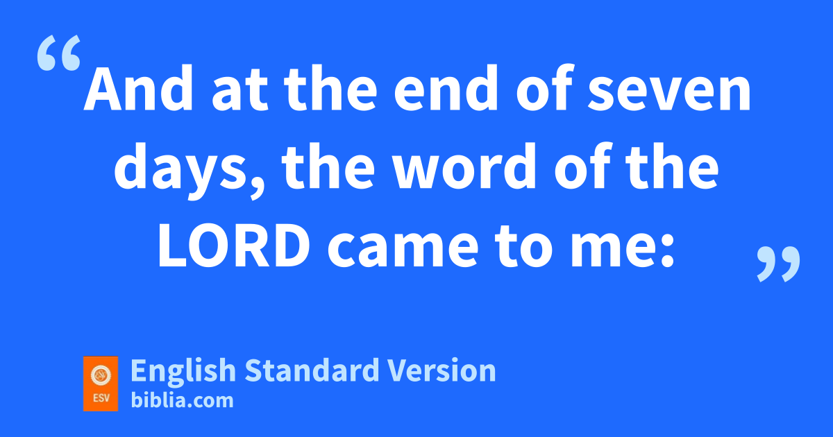 16 sAnd at the end of seven days, the word of the Lord came to me: 17 t“Son of man, uI have made you a watchman for the house of Israel. Whenever you hear a word from my mouth, you shall vgive them warning from me. 18 wIf I say to the wicked, x‘You shall surely die,’ vand you give him no warning, nor speak to warn the wicked from his wicked way, in order to save his life, that wicked person yshall die for4 his iniquity, zbut his blood I will require at your hand. 19 aBut if you warn the wicked, and he does not turn from his wickedness, or from his wicked way, he shall die for his iniquity, bbut you cwill have delivered your soul. 20 dAgain, if a righteous person turns from his righteousness and commits injustice, eand I lay a stumbling block before him, he shall die. vBecause you have not warned him, he shall die for his sin, dand his righteous deeds that he has done shall not be remembered, zbut his blood I will require at your hand. 21 But if you warn the righteous person not to sin, and he does not sin, he shall surely live, because he took warning, and you will have delivered your soul.”