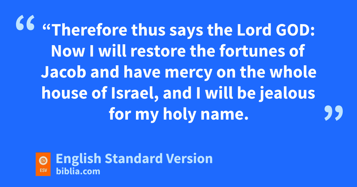 25 “Therefore thus says the Lord God: Now mI will restore the fortunes of Jacob and have mercy on nthe whole house of Israel, and oI will be jealous for my holy name. 26 They shall pforget their shame and all the treachery they have practiced against me, when qthey dwell securely in their land with rnone to make them afraid, 27 swhen I have brought them back from the peoples and gathered them from their enemies’ lands, tand through them have vindicated my holiness in the sight of many nations. 28 hThen they shall know that I am the Lord their God, because I sent them into exile among the nations and then assembled them into their own land. I will leave none of them remaining among the nations anymore. 29 uAnd I will not hide my face anymore from them, when vI pour out my Spirit upon the house of Israel, declares the Lord God.”
