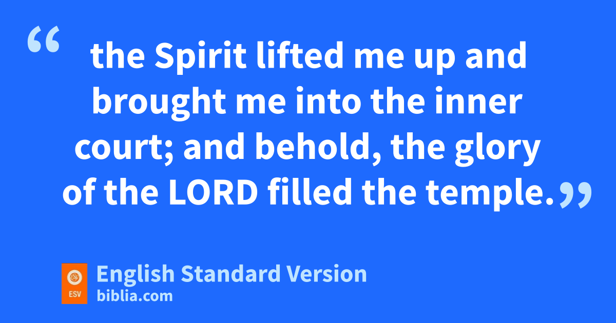 43 Then he led me to bthe gate, the gate facing east. 2 And behold, cthe glory of the God of Israel was coming from the east. And dthe sound of his coming was like the sound of many waters, and ethe earth shone with his glory. 3 And fthe vision I saw was just like the vision that I had seen gwhen he1 came to destroy the city, and just like hthe vision that I had seen iby the Chebar canal. And jI fell on my face. 4 As cthe glory of the Lord kentered the temple by the gate facing east, 5 lthe Spirit lifted me up and brought me into mthe inner court; and behold, nthe glory of the Lord filled the temple.