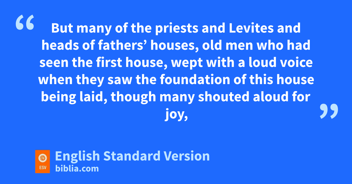 And all the people shouted with a great shout when they praised the Lord, because the foundation of the house of the Lord was laid. 12 But many of the priests and Levites and heads of fathers’ houses, fold men who had seen the first house, wept with a loud voice when they saw the foundation of this house being laid, though many shouted aloud for joy, 13 so that the people could not distinguish the sound of the joyful shout from the sound of the people’s weeping, for the people shouted with a great shout, and the sound was heard far away.
