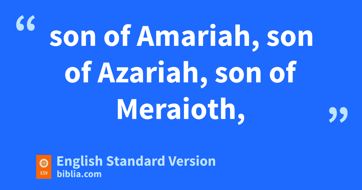 7 Now after this, vin the reign of vArtaxerxes king of Persia, wEzra the son of Seraiah, son of Azariah, son of Hilkiah, 2 son of Shallum, son of Zadok, son of Ahitub, 3 son of Amariah, son of Azariah, son of Meraioth, 4 son of Zerahiah, son of Uzzi, son of Bukki, 5 son of Abishua, son of Phinehas, son of Eleazar, son of Aaron the chief priest— 6 this Ezra went up from Babylonia. He was a scribe xskilled in the Law of Moses that the Lord, the God of Israel, had given, and the king granted him all that he asked, yfor the hand of the Lord his God was on him.
