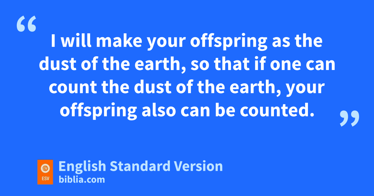 14 The Lord said to Abram, after Lot had separated from him, “Lift up your eyes and look from the place where you are, onorthward and southward and eastward and westward, 15 for all the land that you see I will give pto you and qto your offspring forever. 16 rI will make your offspring as the dust of the earth, so that if one can count the dust of the earth, your offspring also can be counted. 17 Arise, walk through the length and the breadth of the land, for I will give it to you.” 18 So Abram moved his tent and came and ssettled by the toaks2 of Mamre, which uare at Hebron, and there he built an altar to the Lord.