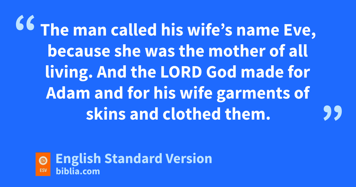 20 The man called his wife’s name Eve, because she was the mother of all living.7 21 And the Lord God made for Adam and for his wife garments of skins and clothed them.