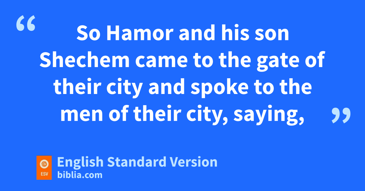 18 Their words pleased Hamor and Hamor’s son Shechem. 19 And the young man did not delay to do the thing, because he delighted in Jacob’s daughter. Now rhe was the most honored of all his father’s house. 20 So Hamor and his son Shechem scame to the gate of their city and spoke to the men of their city, saying, 21 “These men are at peace with us; let them dwell in the land and ttrade in it, for behold, the land is large enough for them. Let us take their daughters as wives, and let us give them our daughters. 22 Only on this condition will the men agree to dwell with us to become one people—when every male among us is circumcised as they are circumcised. 23 Will not their livestock, their property and all their beasts be ours? Only let us agree with them, and they will dwell with us.” 24 And all who went out of the gate of his city listened to Hamor and his son Shechem, and every male was circumcised, all who uwent out of the gate of his city.