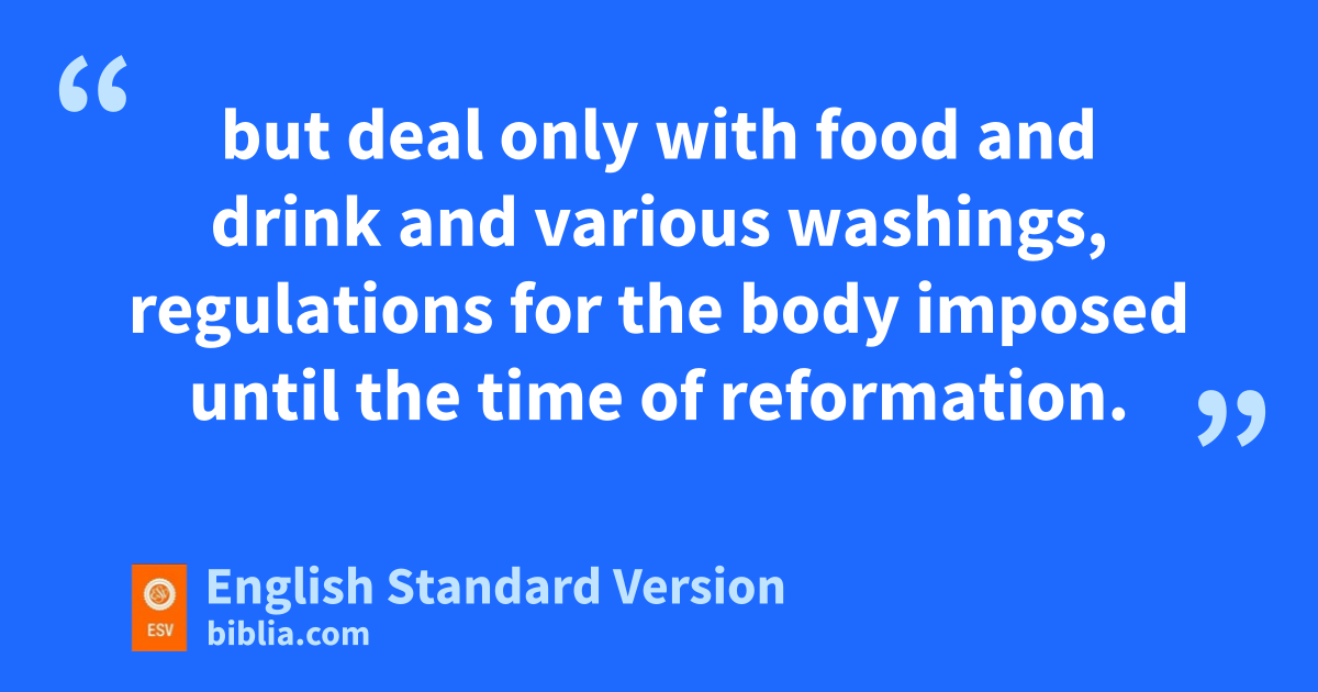6 These preparations having thus been made, zthe priests go regularly into the first section, performing their ritual duties, 7 but into the second only athe high priest goes, and he but aonce a year, and not without taking blood, bwhich he offers for himself and for the unintentional sins of the people. 8 By this the Holy Spirit indicates that cthe way into the holy places is not yet opened as long as the first section is still standing 9 (which is symbolic for the present age).4 According to this arrangement, gifts and sacrifices are offered dthat cannot perfect the conscience of the worshiper, 10 but deal only with efood and drink and fvarious washings, regulations for the body imposed until the time of reformation.
