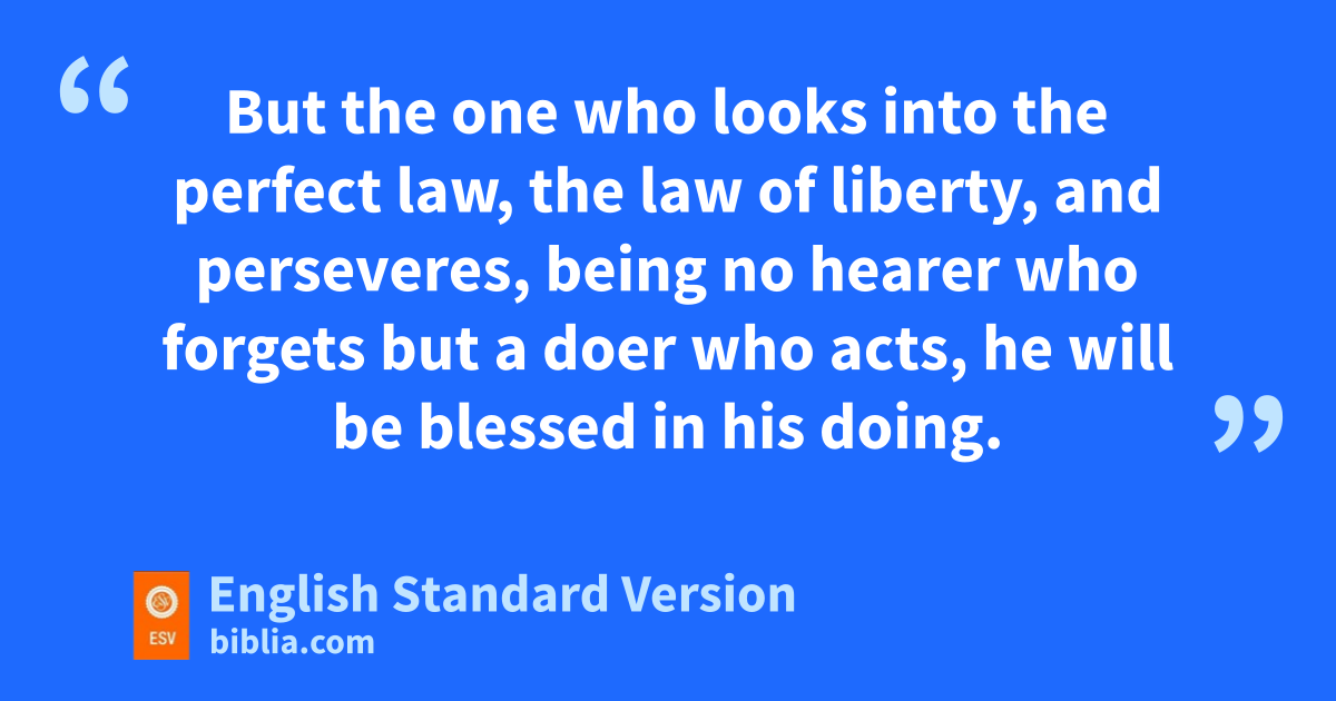 22 But be ndoers of the word, and not hearers only, deceiving yourselves. 23 For if anyone is a hearer of the word and not a doer, he is like a man who looks intently at his natural face in a mirror. 24 For he looks at himself and goes away and at once forgets what he was like. 25 But the one who looks into the perfect law, othe law of liberty, and perseveres, being no hearer who forgets but a doer who acts, phe will be blessed in his doing.