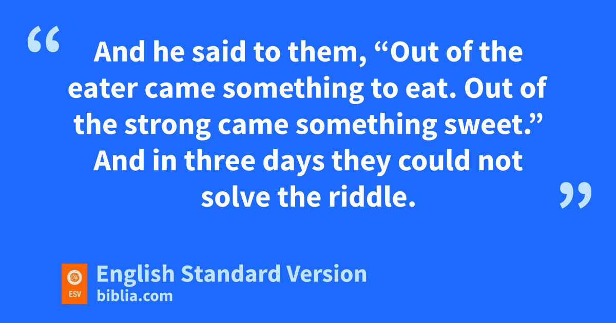 10 His father went down to the woman, and Samson prepared a feast there, for so the young men used to do. 11 As soon as the people saw him, they brought thirty companions to be with him. 12 And Samson said to them, z“Let me now put a riddle to you. If you can tell me what it is, within athe seven days of the feast, and find it out, then I will give you thirty linen garments and thirty bchanges of clothes, 13 but if you cannot tell me what it is, then you shall give me thirty linen garments and thirty changes of clothes.” And they said to him, “Put your riddle, that we may hear it.” 14 And he said to them,