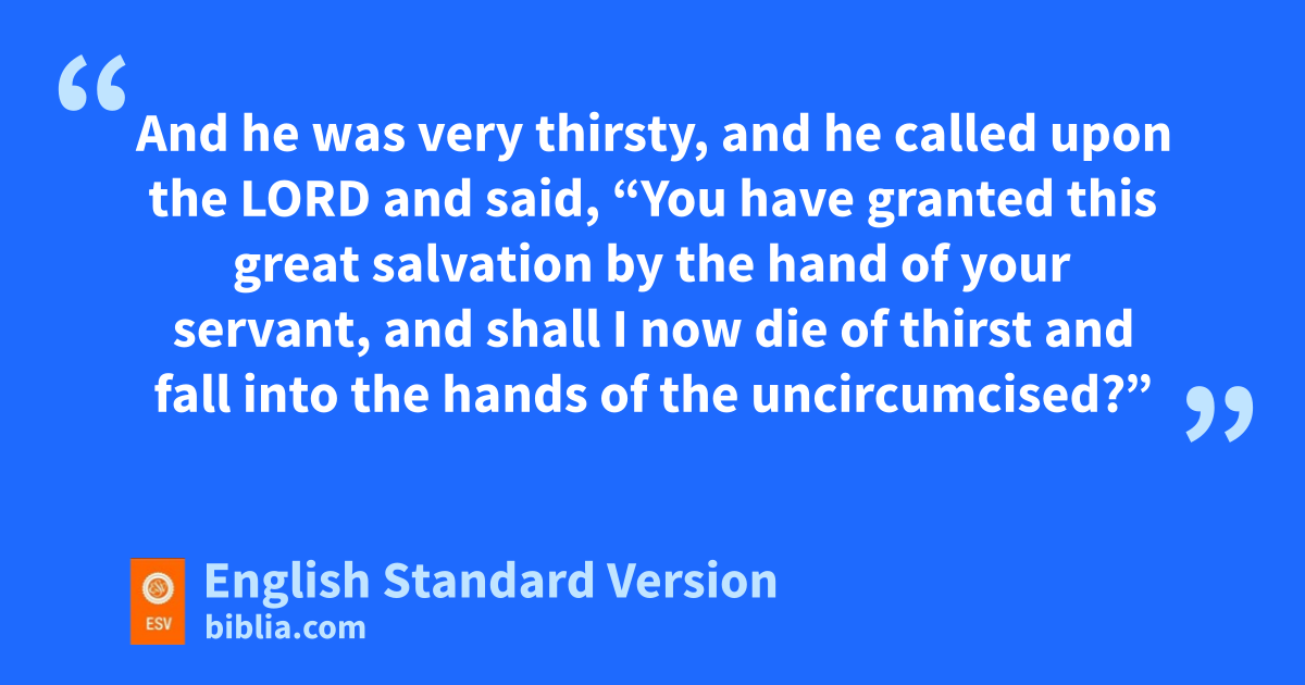 18 And he was very thirsty, and he called upon the Lord and said, w“You have granted this great salvation by the hand of your servant, and shall I now die of thirst and fall into the hands of the uncircumcised?” 19 And God split open the hollow place that is vat Lehi, and water came out from it. And when he drank, xhis spirit returned, and he revived. Therefore the name of it was called En-hakkore;2 it is at Lehi to this day. 20 And he judged Israel yin the days of the Philistines twenty years.