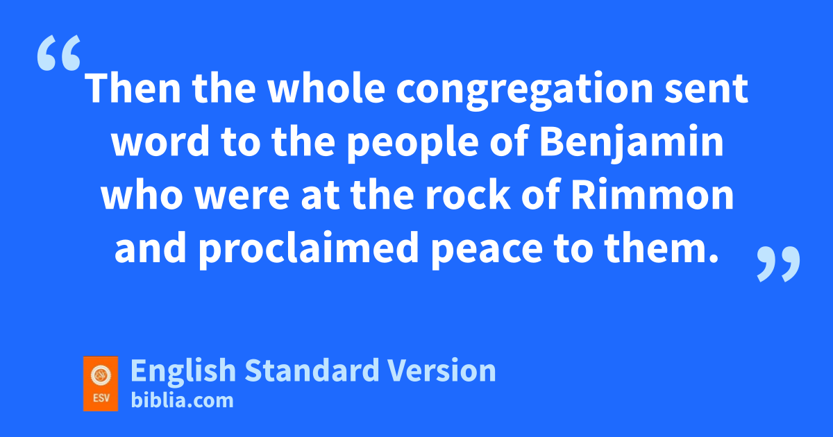 13 Then the whole congregation sent word to the people of Benjamin who were at the urock of Rimmon and vproclaimed peace to them. 14 And Benjamin returned at that time. And they gave them the women whom they had saved alive of the women of Jabesh-gilead, but they were not enough for them. 15 And the people whad compassion on Benjamin because the Lord had made a breach in the tribes of Israel.