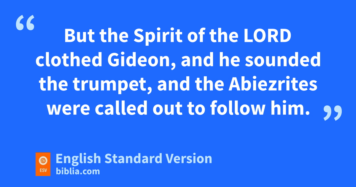 33 Now tall the Midianites and the Amalekites and the people of the East came together, and they crossed the Jordan and encamped in uthe Valley of Jezreel. 34 But vthe Spirit of the Lord clothed Gideon, wand he sounded the trumpet, and the Abiezrites were called out to follow him. 35 xAnd he sent messengers throughout all Manasseh, and they too were called out to follow him. xAnd he sent messengers to Asher, Zebulun, and Naphtali, and they went up to meet them.