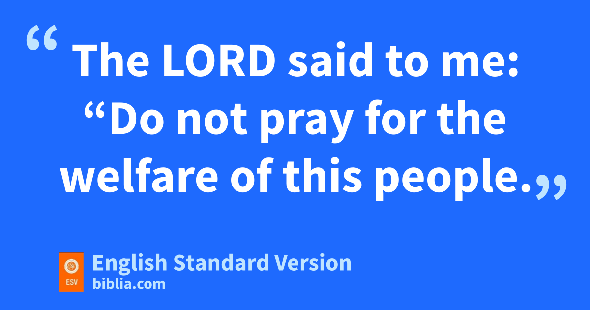 11 The Lord said to me: r“Do not pray for the welfare of this people. 12 Though they fast, I will not hear their cry, sand though they offer burnt offering and grain offering, I will not accept them. But I will consume them tby the sword, by famine, and by pestilence.”