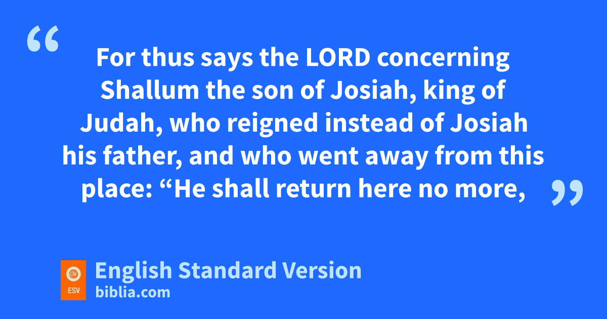 11 For thus says the Lord concerning Shallum the son of Josiah, king of Judah, who reigned instead of Josiah his father, and mwho went away from this place: “He shall return here no more, 12 but min the place where they have carried him captive, there shall he die, and he shall never see this land again.”