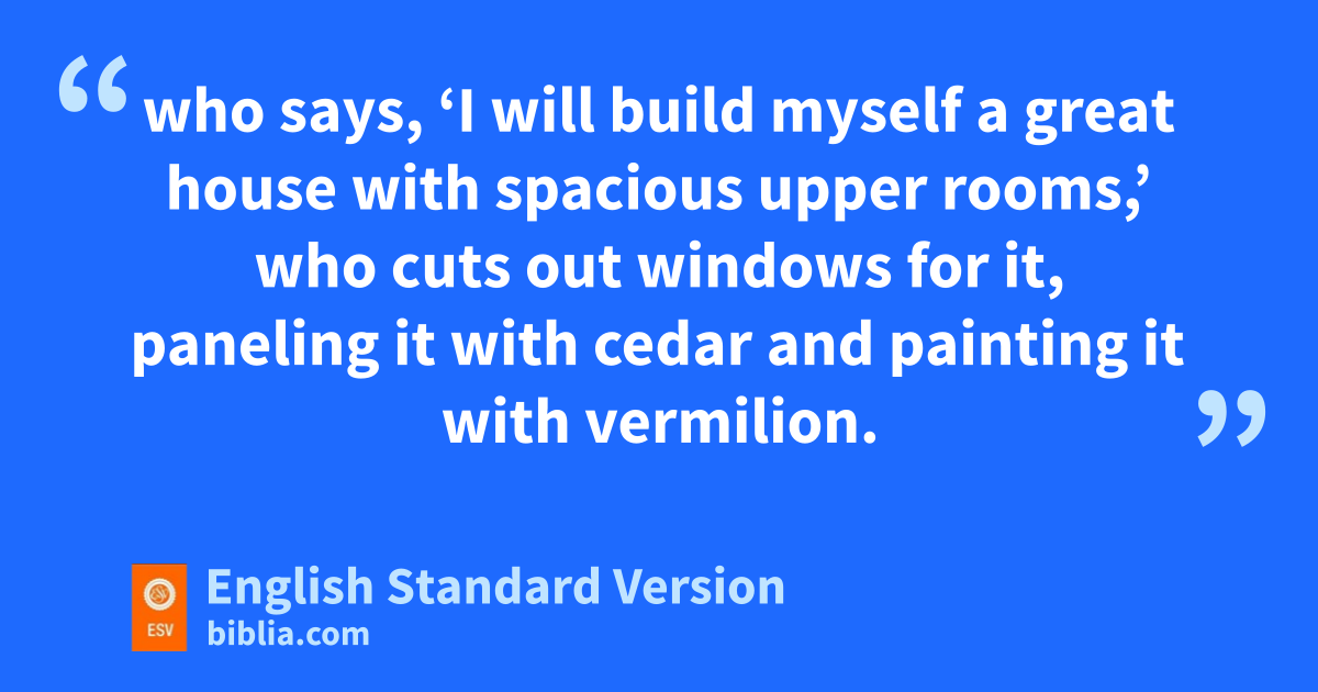 22 Thus says the Lord: “Go down to the house of the king of Judah and speak there this word, 2 and say, w‘Hear the word of the Lord, O king of Judah, who sits on the throne of David, you, and your servants, and your people who enter these gates. 3 Thus says the Lord: xDo justice and righteousness, and deliver from the hand of the oppressor him who has been robbed. And ydo no wrong or violence zto the resident alien, xthe fatherless, and the widow, nor ashed innocent blood in this place. 4 For if you will indeed obey this word, bthen there shall enter the gates of this house kings who sit on the throne of David, riding in chariots and on horses, they and their servants and their people. 5 But if you will not obey these words, I cswear by myself, declares the Lord, that dthis house shall become a desolation. 6 For thus says the Lord concerning the house of the king of Judah:
