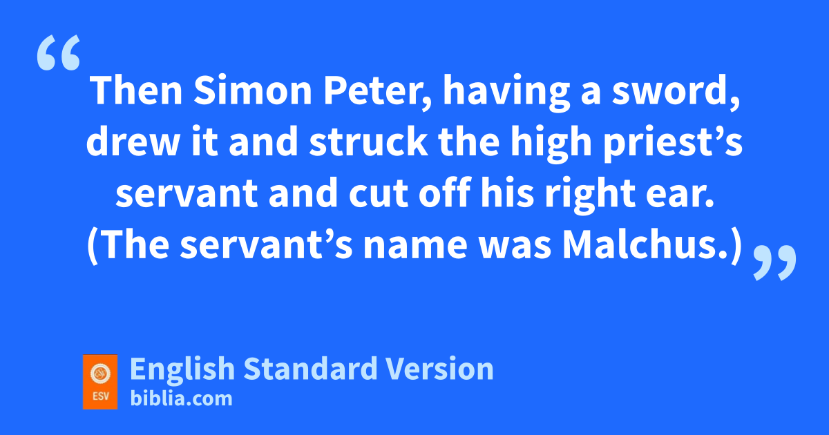 18 When Jesus had spoken these words, nhe went out with his disciples across othe brook Kidron, where there was a garden, which he and his disciples entered. 2 Now Judas, who betrayed him, also knew pthe place, for qJesus often met there with his disciples. 3 rSo Judas, having procured a band of soldiers and some officers from the chief priests and the Pharisees, went there with lanterns and torches and weapons. 4 Then Jesus, sknowing all that would happen to him, came forward and said to them, t“Whom do you seek?” 5 They answered him, “Jesus of Nazareth.” Jesus said to them, “I am he.”1 Judas, who betrayed him, was standing with them. 6 uWhen Jesus2 said to them, “I am he,” they drew back and fell to the ground. 7 So he asked them again, t“Whom do you seek?” And they said, “Jesus of Nazareth.” 8 Jesus answered, “I told you that I am he. So, if you seek me, let these men go.” 9 vThis was to fulfill the word that he had spoken: “Of those whom you gave me I have lost not one.” 10 Then Simon Peter, whaving a sword, drew it and struck the high priest’s servant3 and cut off his right ear. (The servant’s name was Malchus.) 11 So Jesus said to Peter, “Put your sword into its sheath; xshall I not drink the cup that the Father has given me?”
