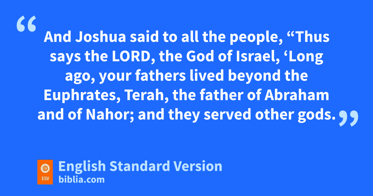 24 Joshua gathered all the tribes of Israel cto Shechem and dsummoned the elders, the heads, the judges, and the officers of Israel. And ethey presented themselves before God. 2 And Joshua said to all the people, “Thus says the Lord, the God of Israel, ‘Long ago, fyour fathers lived beyond the Euphrates,1 Terah, the father of Abraham and of Nahor; and gthey served other gods. 3 hThen I took your father Abraham from beyond the River2 and iled him through all the land of Canaan, and made his offspring many. jI gave him Isaac. 4 And to Isaac I gave kJacob and Esau. lAnd I gave Esau the hill country of Seir to possess, mbut Jacob and his children went down to Egypt. 5 nAnd I sent Moses and Aaron, oand I plagued Egypt with what I did in the midst of it, and pafterward I brought you out.