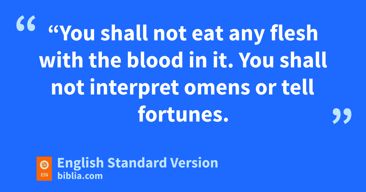 26 x“You shall not eat any flesh with the blood in it. yYou shall not interpret omens or ztell fortunes. 27 aYou shall not round off the hair on your temples or mar the edges of your beard. 28 You shall not make any bcuts on your body for the dead or tattoo yourselves: I am the Lord.