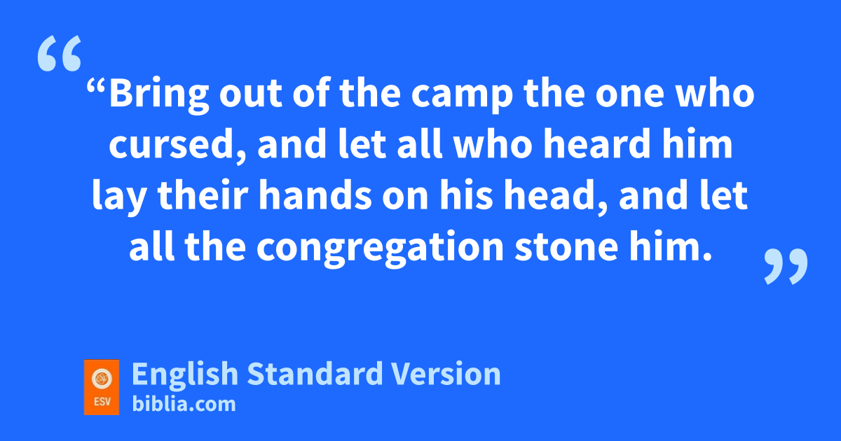 13 Then the Lord spoke to Moses, saying, 14 n“Bring out of the camp the one who cursed, and let all who heard him olay their hands on his head, and let all the congregation stone him. 15 And speak to the people of Israel, saying, Whoever curses his God shall pbear his sin. 16 Whoever qblasphemes the name of the Lord shall surely be put to death. All the congregation shall stone him. The sojourner as well as the native, when he blasphemes the Name, shall be put to death.