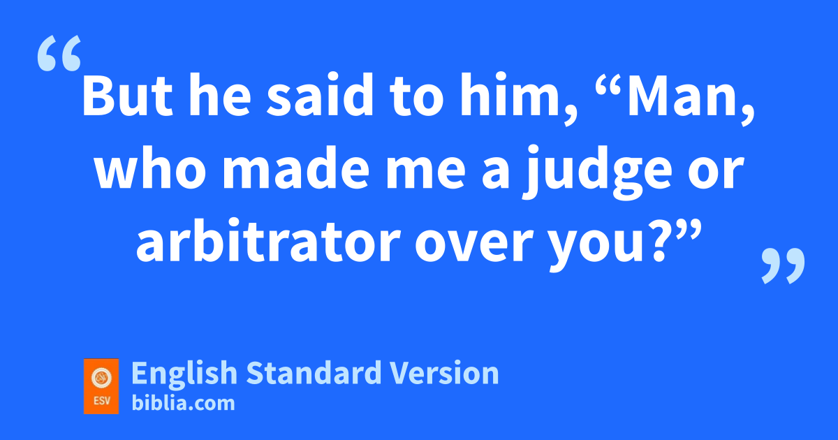 13 sSomeone in the crowd said to him, “Teacher, tell my brother to divide the inheritance with me.” 14 But he said to him, t“Man, uwho made me a judge or arbitrator over you?” 15 And he said to them, v“Take care, and be on your guard against all covetousness, for one’s life does not consist in the abundance of his possessions.” 16 And he told them a parable, saying, w“The land of a rich man produced plentifully, 17 and he thought to himself, x‘What shall I do, for I have nowhere to store my crops?’ 18 And he said, ‘I will do this: I will tear down my ybarns and build larger ones, and there I will store all my grain and my goods. 19 And I will say to my soul, “Soul, you have ample goods laid up zfor many years; relax, aeat, drink, be merry.” ’ 20 But God said to him, b‘Fool! zThis night cyour soul is required of you, and the things you have prepared, dwhose will they be?’ 21 So is the one ewho lays up treasure for himself and is not rich toward God.”