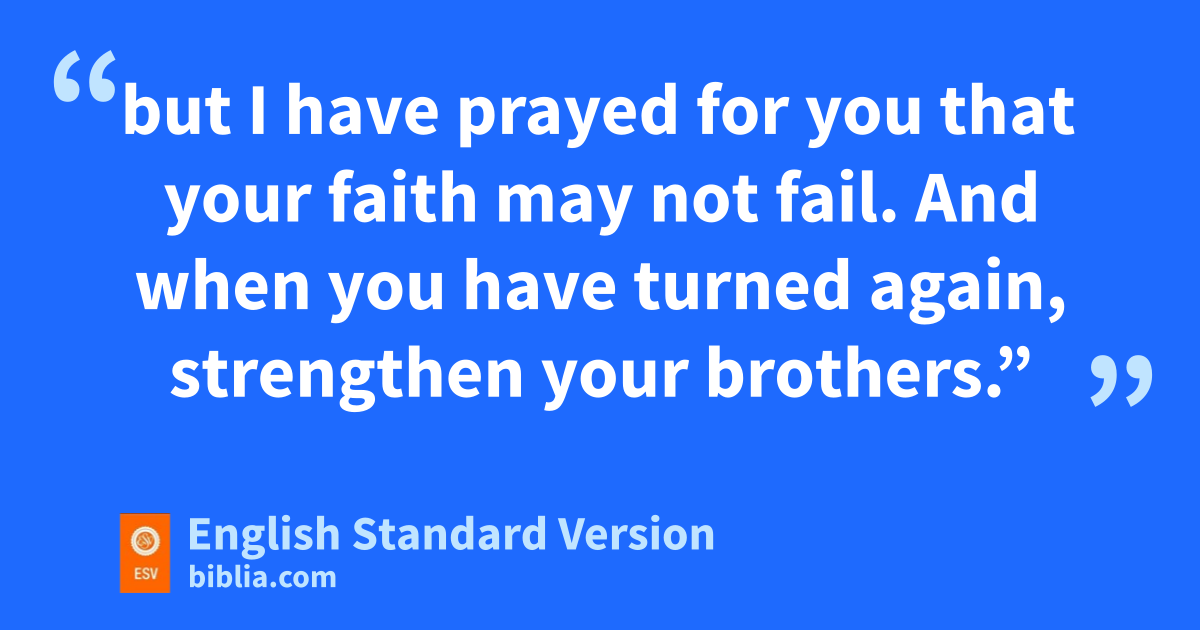 31 “Simon, Simon, behold, bSatan demanded to have you,4 cthat he might sift you like wheat, 32 but dI have prayed for you that your faith may not fail. And when you have turned again, estrengthen your brothers.” 33 Peter5 said to him, “Lord, I am ready to go with you both fto prison and gto death.” 34 hJesus6 said, “I tell you, Peter, the rooster will not crow this day, until you deny three times that you know me.”