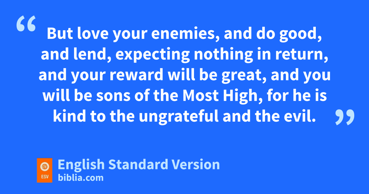 32 z“If you love those who love you, what benefit is that to you? For even sinners love those who love them. 33 And if you do good to those who do good to you, what benefit is that to you? For even sinners do the same. 34 And aif you blend to those from whom you expect to receive, what credit is that to you? Even sinners lend to sinners, to get back the same amount. 35 But clove your enemies, and do good, and lend, expecting nothing in return, and your reward will be great, and dyou will be sons of ethe Most High, for fhe is kind to the ungrateful and the evil. 36 gBe merciful, even as hyour Father is merciful.
