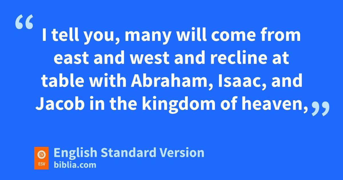 5 kWhen he had entered Capernaum, a centurion came forward to him, appealing to him, 6 “Lord, my servant is lying paralyzed at home, suffering terribly.” 7 And he said to him, “I will come and heal him.” 8 But the centurion replied, “Lord, I am not worthy to have you come under my roof, but lonly say the word, and my servant will be healed. 9 For I too am a man under authority, with soldiers under me. And I say to one, ‘Go,’ and he goes, and to another, ‘Come,’ and he comes, and to my servant,3 ‘Do this,’ and he does it.” 10 When Jesus heard this, mhe marveled and said to those who followed him, “Truly, I tell you, with nno one in Israel4 have I found such faith. 11 I tell you, omany will come from east and west and recline at table with Abraham, Isaac, and Jacob in the kingdom of heaven, 12 pwhile the sons of the kingdom qwill be thrown into the outer darkness. In that place rthere will be weeping and gnashing of teeth.” 13 And to the centurion Jesus said, “Go; let it be done for you sas you have believed.” tAnd the servant was healed at that very moment.