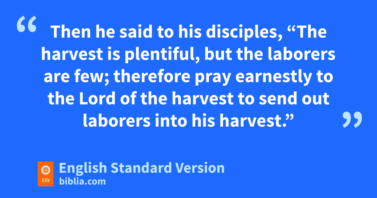 35 nAnd Jesus went throughout all the cities and villages, teaching in their synagogues and proclaiming the gospel of the kingdom and healing every disease and every affliction. 36 oWhen he saw the crowds, phe had compassion for them, because they were harassed and helpless, qlike sheep without a shepherd. 37 rThen he said to his disciples, “The harvest is plentiful, but the laborers are few; 38 therefore spray earnestly to the Lord of the harvest to tsend out laborers into his harvest.”