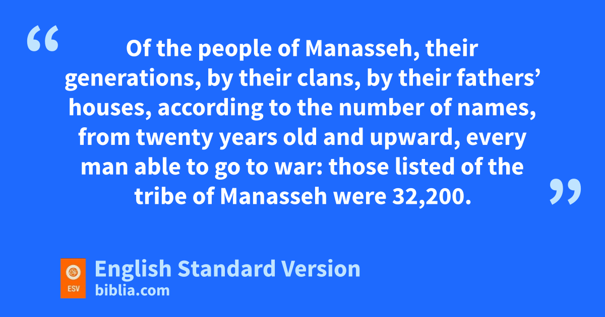 34 Of the people of Manasseh, their generations, by their clans, by their fathers’ houses, according to the number of names, from twenty years old and upward, every man able to go to war: 35 those listed of the tribe of Manasseh were d32,200.