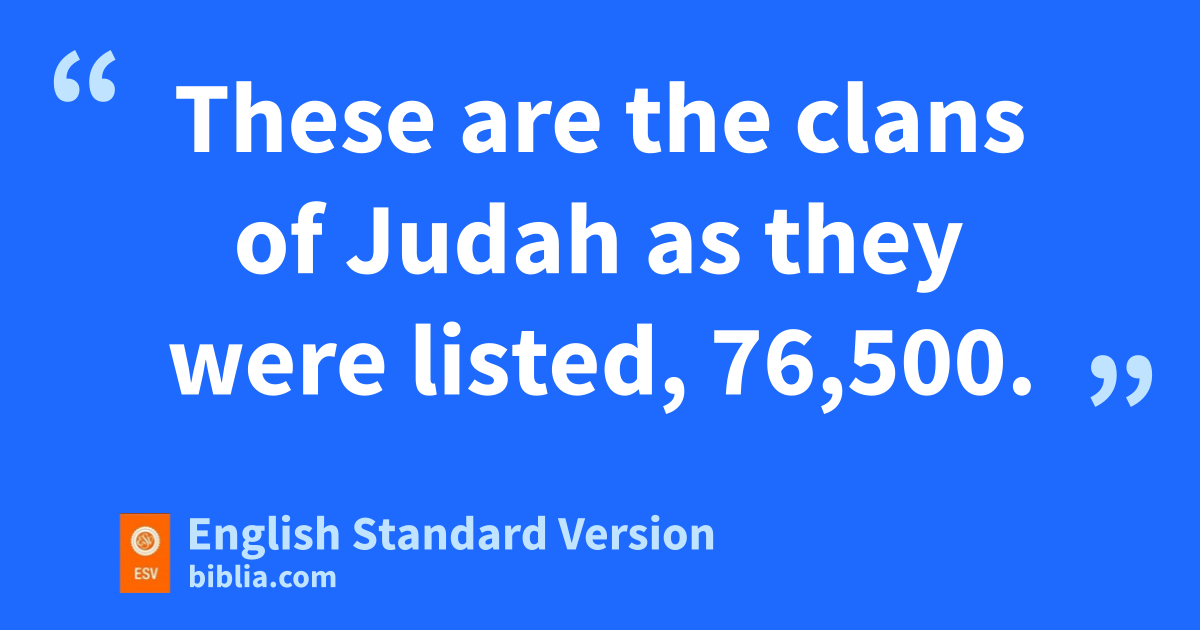 19 The sons of nJudah were Er and Onan; and Er and Onan died in the land of Canaan. 20 And the sons of Judah according to their clans were: of Shelah, the clan of the Shelanites; of Perez, the clan of the Perezites; of Zerah, the clan of the Zerahites. 21 And the sons of Perez were: of Hezron, the clan of the Hezronites; of Hamul, the clan of the Hamulites. 22 These are the clans of Judah as they were listed, o76,500.