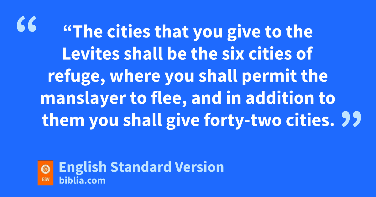 6 “The cities that you give to the Levites shall be uthe six cities of refuge, where you shall permit the manslayer to flee, and in addition to them you shall give forty-two cities. 7 All the cities that you give to the Levites shall be vforty-eight, with their pasturelands. 8 And as for the cities that you shall give wfrom the possession of the people of Israel, xfrom the larger tribes you shall take many, and from the smaller tribes you shall take few; each, in proportion to the inheritance that it inherits, shall give of its cities to the Levites.”