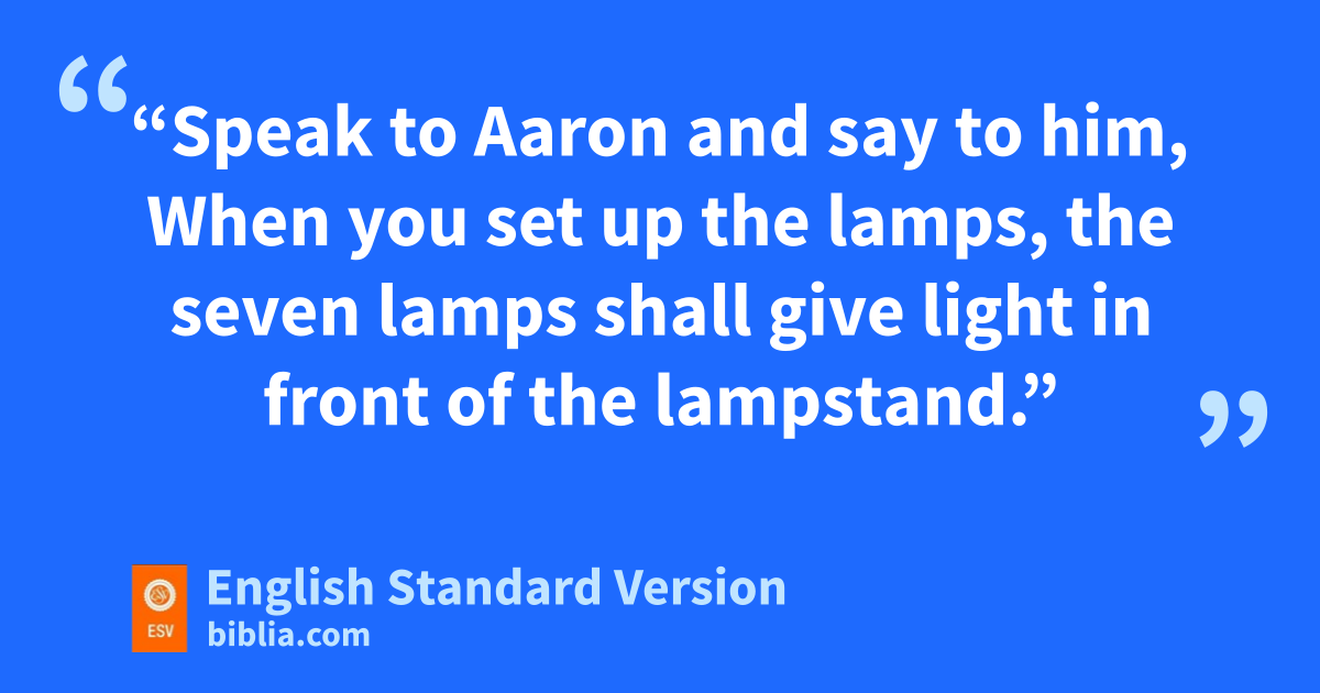 8 Now the Lord spoke to Moses, saying, 2 “Speak to Aaron and say to him, When you set up the lamps, the seven lamps shall give light in front of the lampstand.” 3 And Aaron did so: he set up its lamps in front of the lampstand, as the Lord commanded Moses. 4 And ithis was the workmanship of the lampstand, hammered work of gold. From its base to its flowers, it was hammered work; according to the pattern that the Lord had shown Moses, so he made the lampstand.