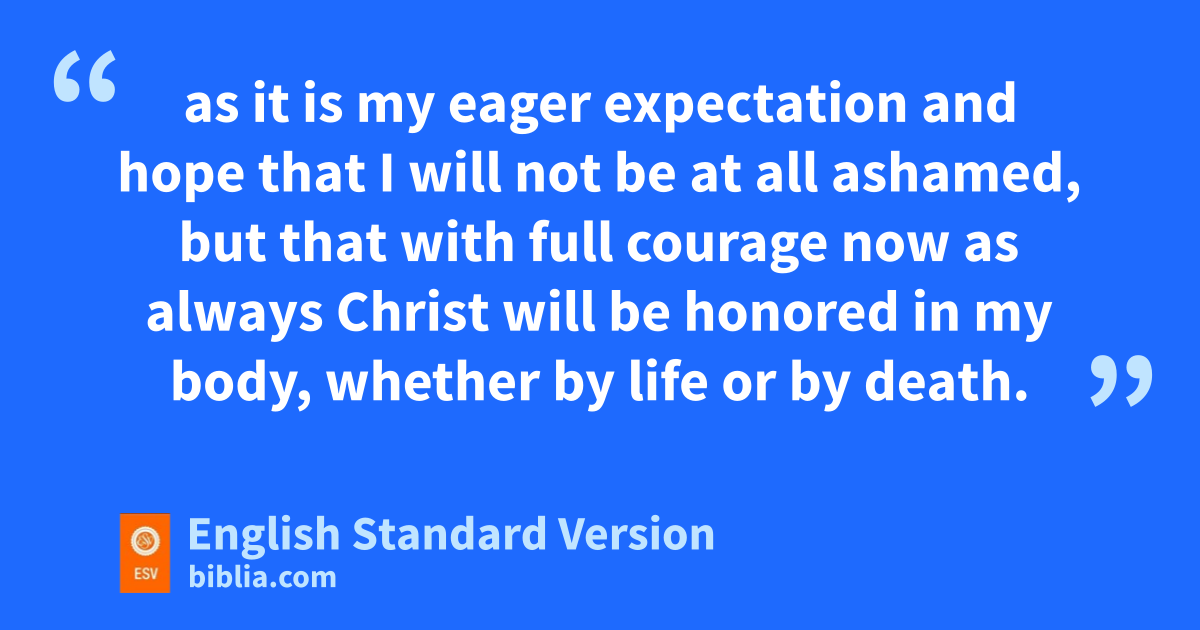 Yes, and I will rejoice, 19 for I know that fthrough your prayers and gthe help of hthe Spirit of Jesus Christ this will turn out for my deliverance, 20 as it is my eager expectation and hope ithat I will not be at all ashamed, but that with full jcourage now as always Christ kwill be honored in my body, lwhether by life or by death. 21 For to me mto live is Christ, and to die is gain. 22 If I am to live in the flesh, that means fruitful labor for me. Yet which I shall choose I cannot tell. 23 nI am hard pressed between the two. My desire is oto depart and pbe with Christ, for that is far better. 24 But to remain in the flesh is more necessary on your account. 25 qConvinced of this, rI know that I will remain and continue with you all, for your sprogress and tjoy in the faith, 26 so that in me uyou may have ample cause to glory in Christ Jesus, because of my coming to you again.