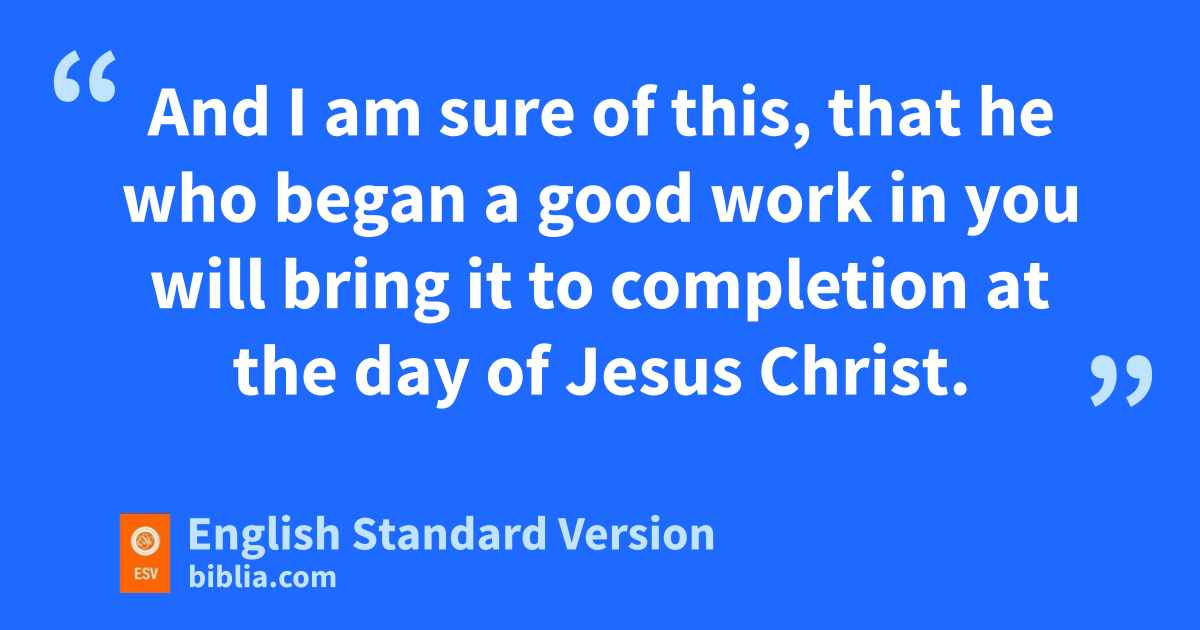 3 eI thank my God fin all my remembrance of you, 4 always in every prayer of mine for you all making my prayer with joy, 5 gbecause of your partnership in the gospel from the first day until now. 6 And I am sure of this, that he who began ha good work in you iwill bring it to completion at jthe day of Jesus Christ. 7 It is right for me to feel this way about you all, because I hold you kin my heart, for you are all lpartakers with me of grace,4 both min my imprisonment and in nthe defense and confirmation of the gospel. 8 For oGod is my witness, phow I yearn for you all with the affection of Christ Jesus. 9 And it is my prayer that qyour love may abound more and more, rwith knowledge and all discernment, 10 so that you may approve what is excellent, sand so be pure and blameless tfor the day of Christ, 11 filled uwith the fruit of righteousness that comes vthrough Jesus Christ, wto the glory and praise of God.