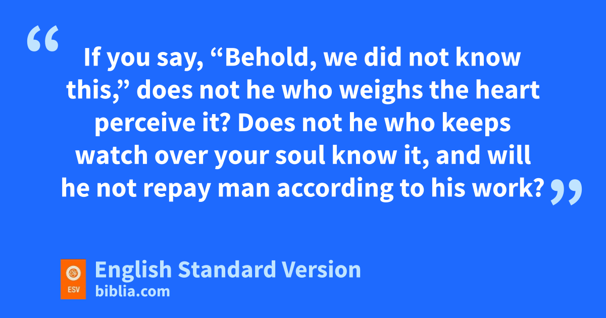 12 If you say, “Behold, we did not know this,”