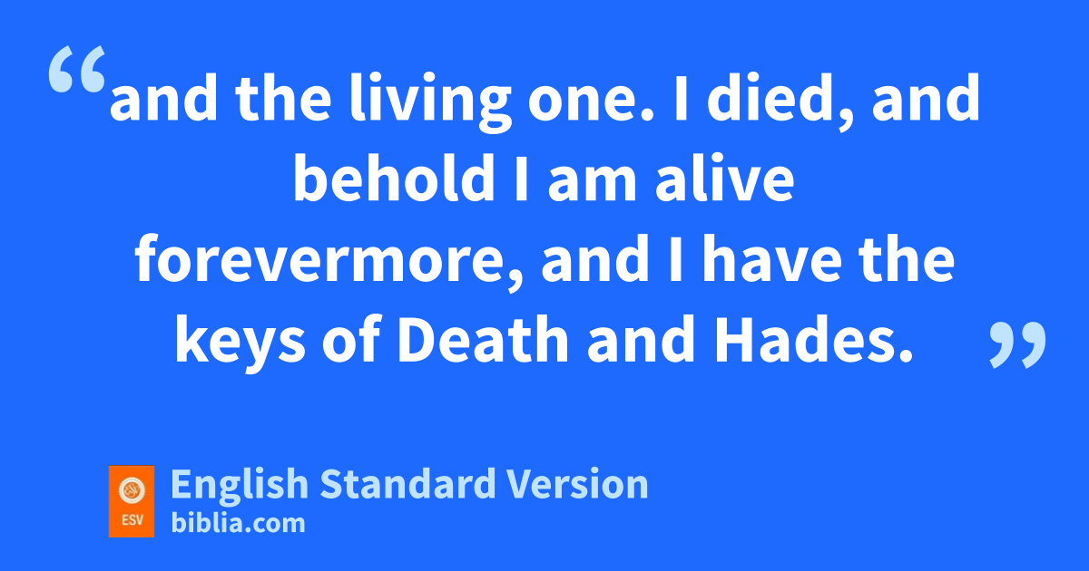 17 vWhen I saw him, I fell at his feet as though dead. But vhe laid his right hand on me, wsaying, “Fear not, xI am the first and the last, 18 and the living one. yI died, and behold I am alive forevermore, and zI have the keys of Death and Hades. 19 aWrite therefore bthe things that you have seen, those that are and those that are to take place after this. 20 As for the mystery of the seven stars that you saw in my right hand, and cthe seven golden lampstands, the seven stars are the angels of the seven churches, and dthe seven lampstands are the seven churches.