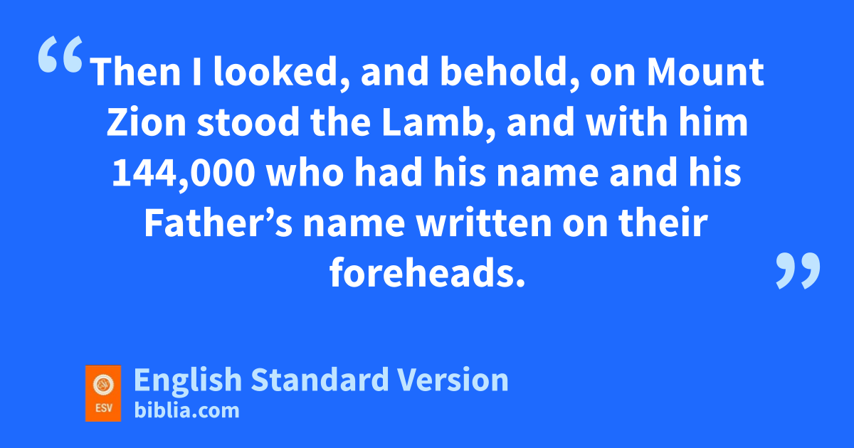 14 Then I looked, and behold, on vMount Zion wstood the Lamb, and with him x144,000 who yhad his name and his Father’s name written zon their foreheads. 2 And I heard a voice from heaven alike the roar of many waters and blike the sound of loud thunder. The voice I heard was like the sound of charpists playing on their harps, 3 and they were singing da new song before the throne and before the four living creatures and before the elders. eNo one could learn that song except the 144,000 who had been redeemed from the earth. 4 It is these who have not defiled themselves with women, for fthey are virgins. It is these gwho follow the Lamb wherever he goes. These have been redeemed from mankind as hfirstfruits for God and the Lamb, 5 and iin their mouth no lie was found, for they are jblameless.
