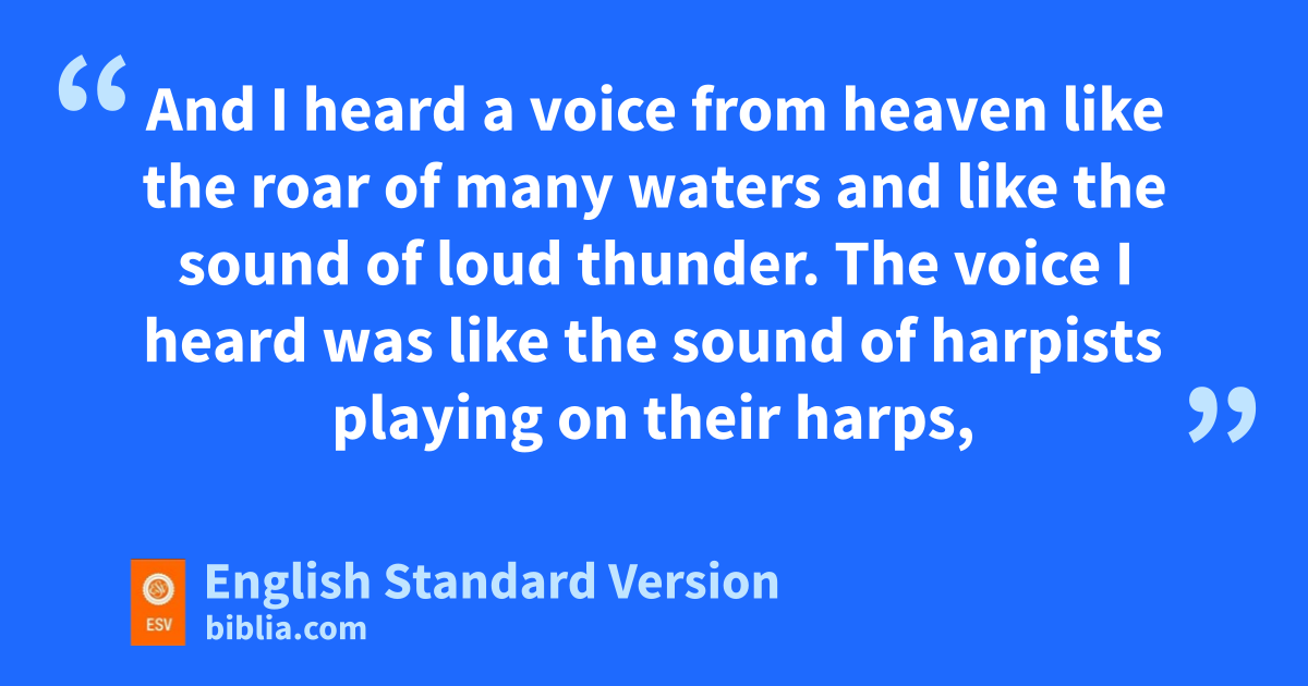 14 Then I looked, and behold, on vMount Zion wstood the Lamb, and with him x144,000 who yhad his name and his Father’s name written zon their foreheads. 2 And I heard a voice from heaven alike the roar of many waters and blike the sound of loud thunder. The voice I heard was like the sound of charpists playing on their harps, 3 and they were singing da new song before the throne and before the four living creatures and before the elders. eNo one could learn that song except the 144,000 who had been redeemed from the earth. 4 It is these who have not defiled themselves with women, for fthey are virgins. It is these gwho follow the Lamb wherever he goes. These have been redeemed from mankind as hfirstfruits for God and the Lamb, 5 and iin their mouth no lie was found, for they are jblameless.