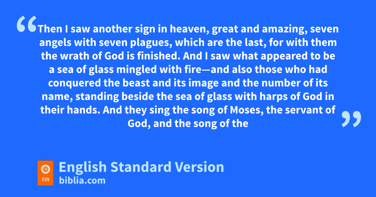 2 And I saw twhat appeared to be a sea of glass mingled with fire—and also those uwho had conquered the beast and its image and vthe number of its name, standing beside the sea of glass wwith harps of God in their hands. 3 And they sing xthe song of Moses, ythe servant of God, and the song of the Lamb, saying,
