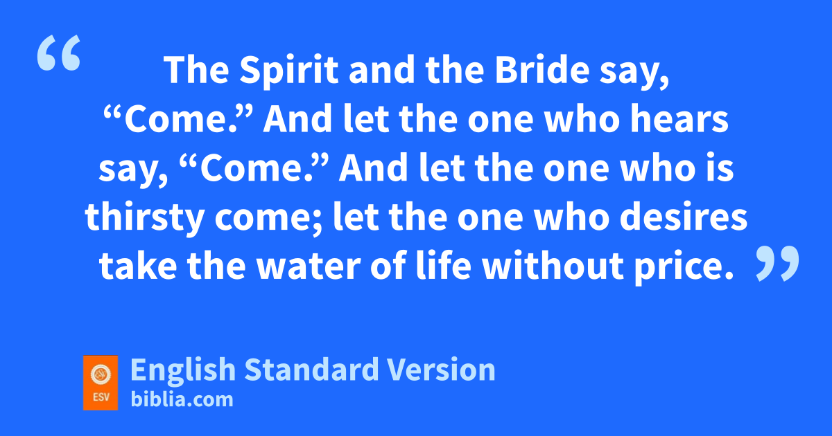 17 The Spirit and mthe Bride say, “Come.” And let the one who hears say, “Come.” And nlet the one who is thirsty come; let the one who desires take the owater of life without price.