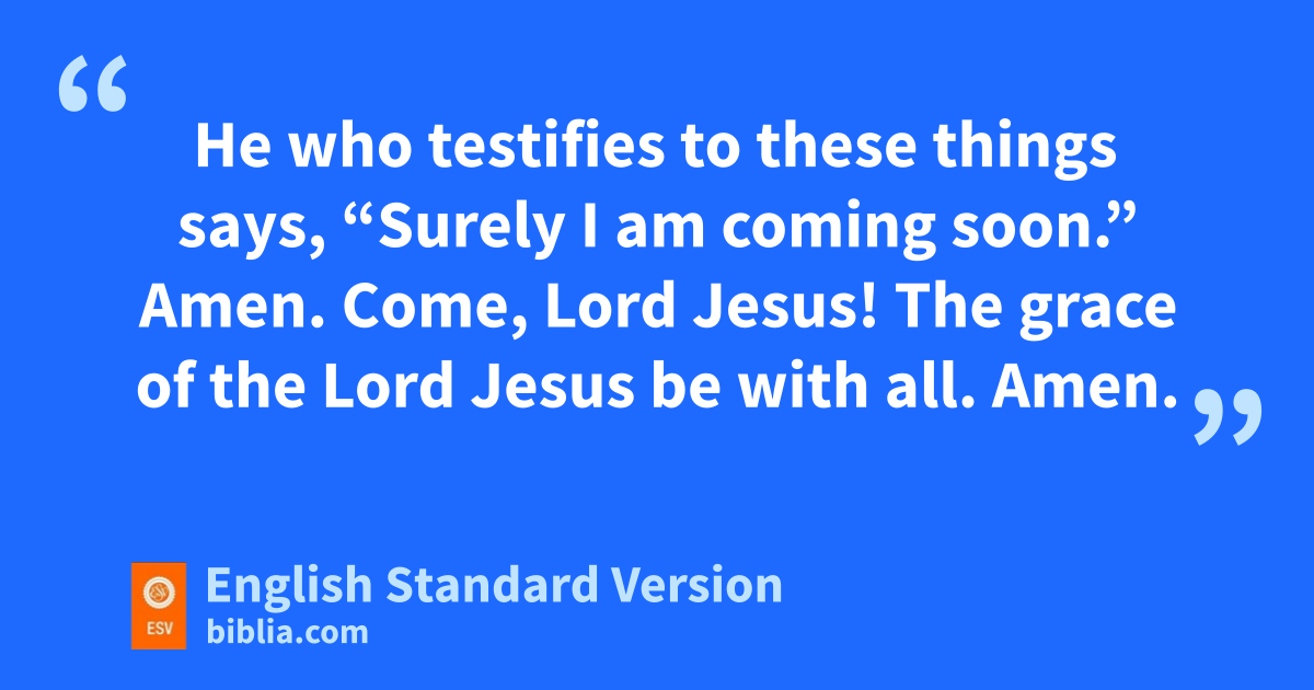 20 He who testifies to these things says, “Surely sI am coming soon.” Amen. tCome, Lord Jesus!