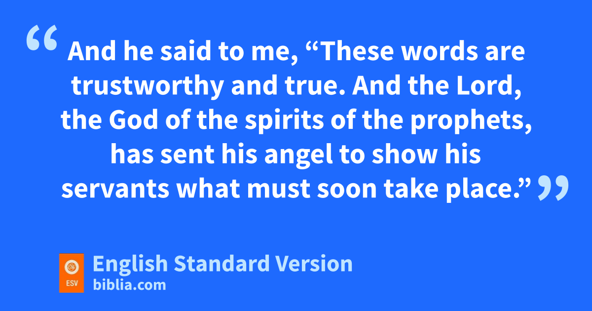 6 And he said to me, m“These words are trustworthy and true. And the Lord, the God of nthe spirits of the prophets, ohas sent his angel to show his servants what must soon take place.”