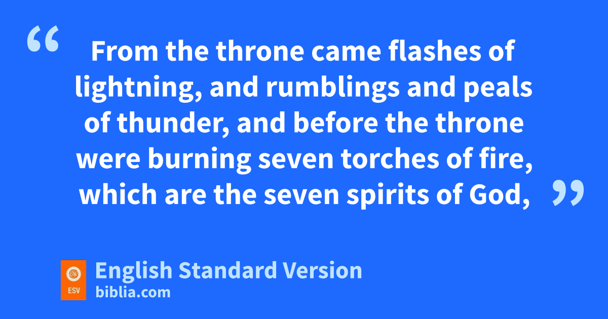 4 After this I looked, and behold, a door standing open in heaven! And the first voice, which I had heard speaking to me flike a trumpet, said, g“Come up here, and hI will show you what must take place after this.” 2 At once iI was in the Spirit, and behold, ja throne stood in heaven, with one seated on the throne. 3 And he who sat there had the appearance of kjasper and carnelian, and around the throne was la rainbow that had the appearance of an emerald. 4 Around the throne were mtwenty-four thrones, and seated on the thrones were twenty-four elders, nclothed in white garments, with ogolden crowns on their heads. 5 From the throne came pflashes of lightning, and rumblings1 and peals of thunder, and before the throne were burning qseven torches of fire, rwhich are the seven spirits of God, 6 and before the throne there was sas it were a sea of glass, like crystal.