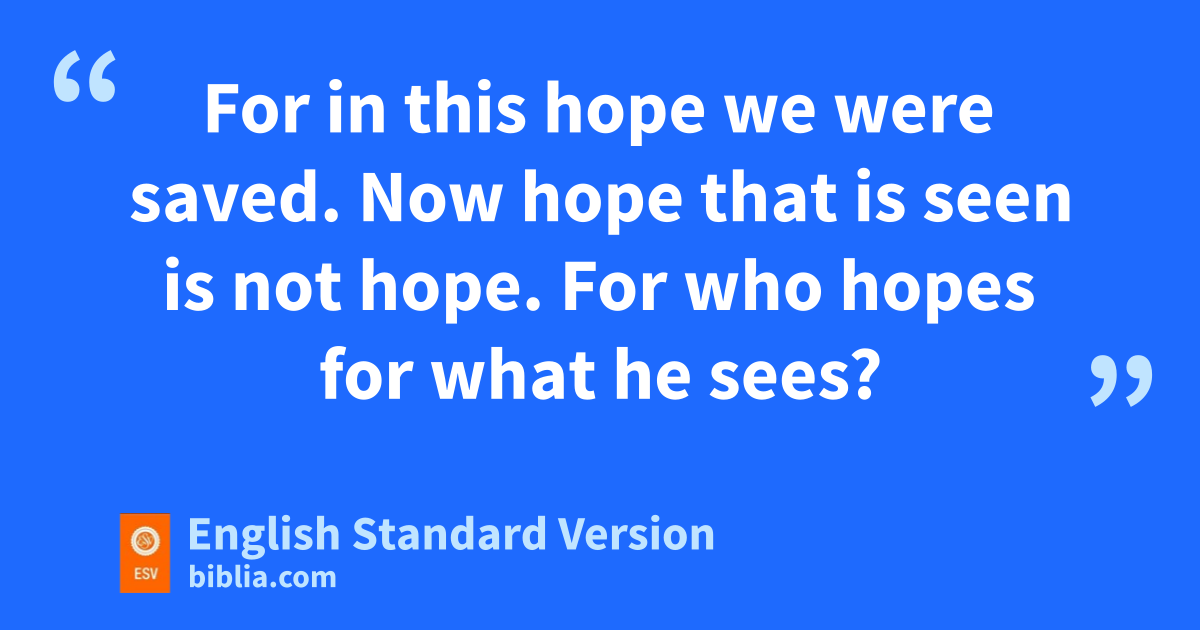 18 For I consider that the sufferings of this present time nare not worth comparing with the glory that is to be revealed to us. 19 For the creation waits with eager longing for othe revealing of the sons of God. 20 For the creation pwas subjected to futility, not willingly, but qbecause of him who subjected it, in hope 21 that rthe creation itself will be set free from its bondage to corruption and obtain the freedom of the glory of the children of God. 22 For we know that sthe whole creation thas been groaning together in the pains of childbirth until now. 23 And not only the creation, but we ourselves, who have uthe firstfruits of the Spirit, vgroan inwardly as wwe wait eagerly for adoption as sons, xthe redemption of our bodies. 24 For yin this hope we were saved. Now zhope that is seen is not hope. For who hopes for what he sees? 25 But if we hope for what we do not see, we await for it with patience.